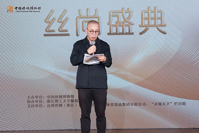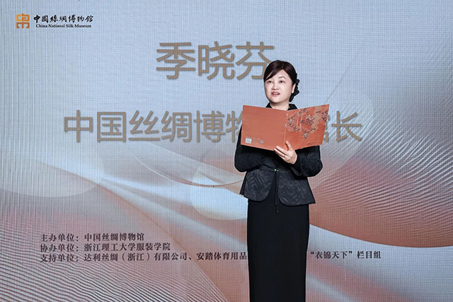 開幕式上,領(lǐng)導(dǎo)嘉賓觀看了今年10月在法國國立吉美亞洲藝術(shù)博物館舉辦的2024“絲綢之路周”收官活動的回顧視頻,這也是國絲第一次以“絲路文物活化設(shè)計”為主題,走進浪漫之都巴黎。中國絲綢博物館季曉芬館長團隊攜手浙江理工大學(xué)團隊、法國設(shè)計師、安踏設(shè)計團隊,共創(chuàng)了以館藏唐代翼馬紋錦和立獅寶花紋錦為靈感源的60多套鞋服,并采用中國蠶桑絲織技藝和現(xiàn)代科技完成作品制作。季館長認(rèn)為絲綢是傳統(tǒng)的,更是時尚的,絲綢與時尚有著共通的內(nèi)核,那就是生活的美與藝術(shù)。時尚是一種面向未來的藝術(shù),時尚是一種朝氣蓬勃的力量,時尚是一種超越時空的價值。希望“絲尚盛典”能夠架設(shè)起一道從絲綢博物館到時尚藝術(shù)界,到時尚產(chǎn)業(yè)界,再到時尚愛好者的橋梁,讓古老的絲綢和絲路文化通過時尚的方式煥發(fā)出璀璨的時代光彩。