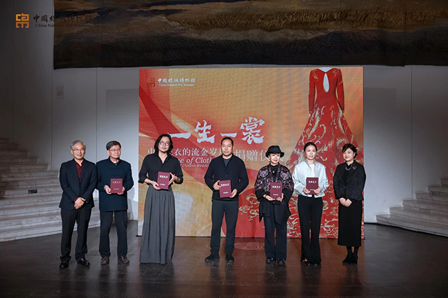 同時(shí)為了感謝社會(huì)各界尤其是業(yè)內(nèi)專(zhuān)家及品牌對(duì)本次展覽的大力支持,活動(dòng)現(xiàn)場(chǎng)舉行了藏品捐贈(zèng)儀式。浙江省文物保護(hù)利用協(xié)會(huì)會(huì)長(zhǎng)楊建武和中國(guó)絲綢博物館館長(zhǎng)季曉芬共同為中央美術(shù)學(xué)院呂越教授、武漢紡織大學(xué)葉洪光教授、“振興祥”中式服裝制作技藝傳承人包文其、瑞秋來(lái)(Rachel Lai)品牌創(chuàng)始人祝旸熙、弎辻旗袍品牌創(chuàng)始人蘇荷女士頒發(fā)收藏證書(shū)。宋錦織造技藝國(guó)家級(jí)非遺代表性傳承人錢(qián)小萍,韓國(guó)郡長(zhǎng)大學(xué)時(shí)裝設(shè)計(jì)專(zhuān)業(yè)教授、韓紙時(shí)裝設(shè)計(jì)師全亮培也為此次活動(dòng)捐贈(zèng)藏品。