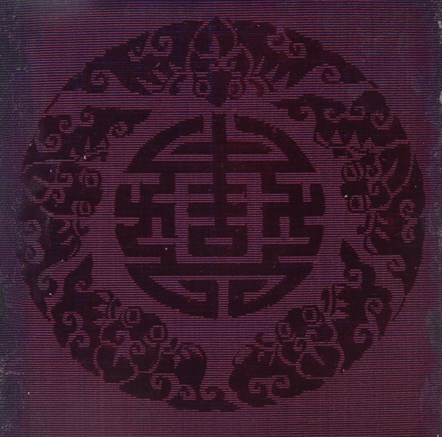 漳絨,是中國(guó)傳統(tǒng)織物種類(lèi)之一,據(jù)說(shuō)始于福建漳州一帶,所以被稱(chēng)作“漳絨”,也可以稱(chēng)作“天鵝絨”。到清代,漳絨技術(shù)達(dá)到高峰,也一直作為漳州的貢品上供朝廷。漳絨以蠶絲作經(jīng)線(xiàn),用絲線(xiàn)或棉紗作緯線(xiàn)進(jìn)行交織,再加以專(zhuān)門(mén)的桑蠶絲作絨經(jīng),在假織桿上織出絨圈??椇弥?,織工另用雕花刀按設(shè)計(jì)好的紋樣割斷成絨毛,形成圖案。這種以絨圈作地、絨毛起花的漳絨也被稱(chēng)雕花絨。這件漳絨就是先織造再雕花、形成五蝠捧壽圖案的織品。