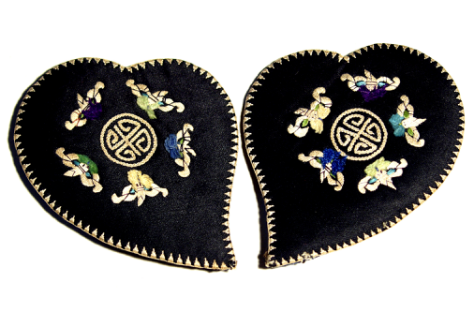清黑緞彩繡五蝠捧壽紋耳套