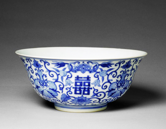 清宣統(tǒng)青花雙“喜”字桃蝠大碗(圖片來(lái)源于故宮博物院官網(wǎng))