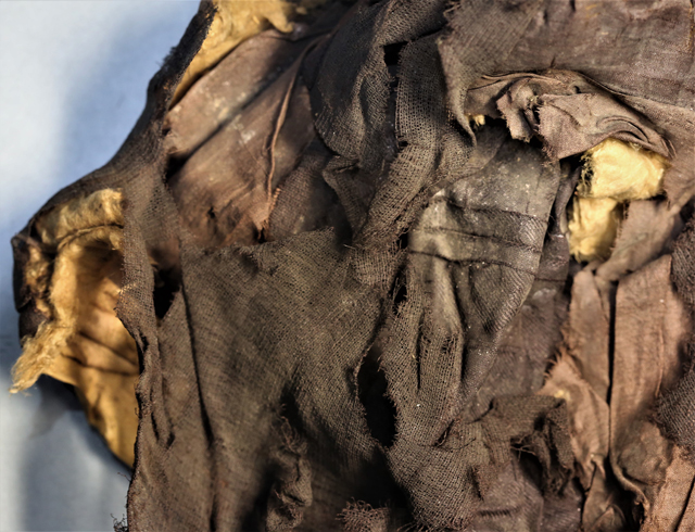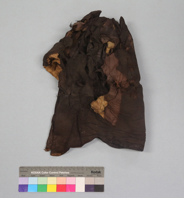 圖1 遼代褐色絲綿羅帽(修復(fù)前)