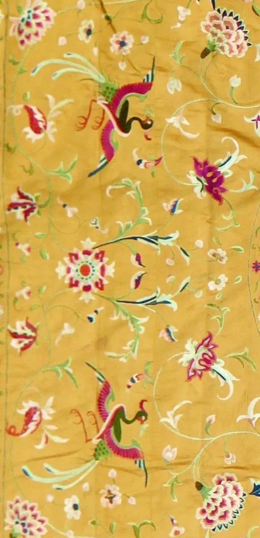 外銷(xiāo)黃緞地彩繡雙頭鷹花鳥(niǎo)紋床罩