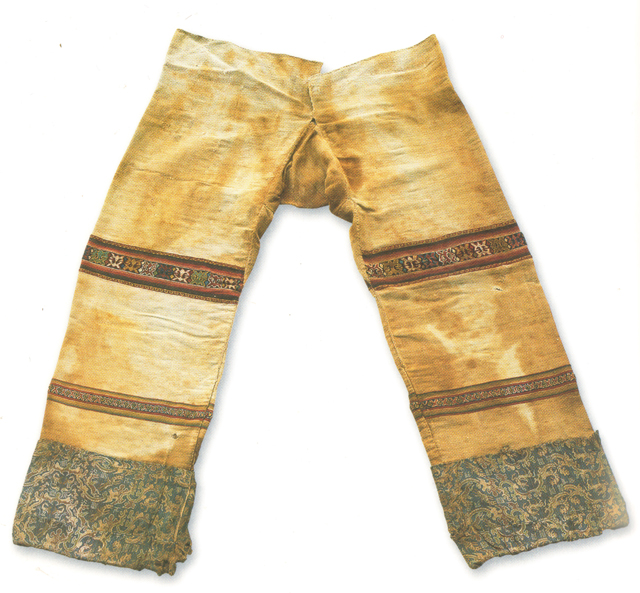 “恩澤”錦緣緙毛褲,漢晉,新疆尼雅出土