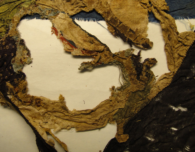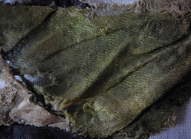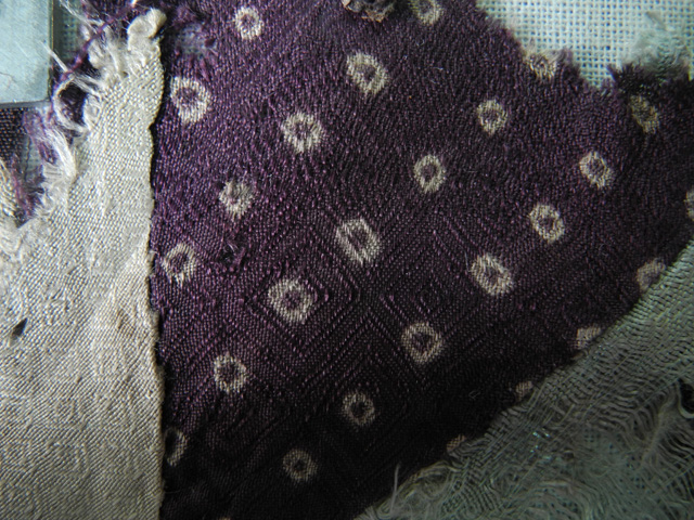 圖2 敦煌百衲(依次:藍(lán)色條帶及絲絮、長方形錦、三角形錦、百衲主體)