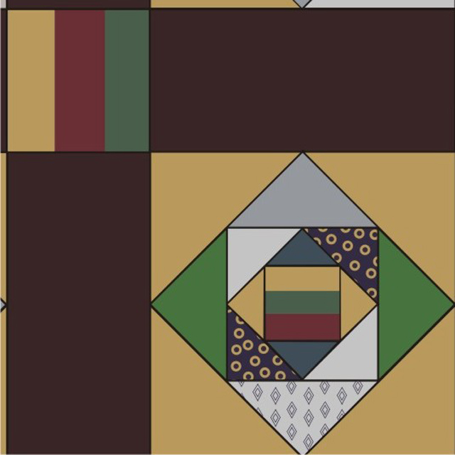 圖9 絲綢百衲(紅色圈出部分為拐角處的三角形錦)