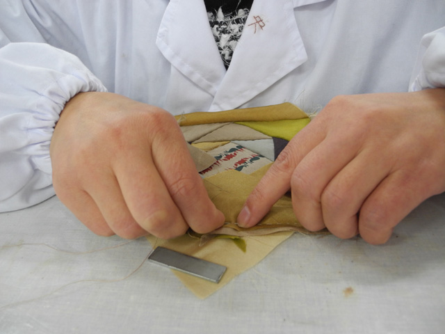 百衲修復(fù)所用織物品種繁多,每個單元結(jié)構(gòu)的塊面由若干小塊拼縫而得,對于縫紉工藝要求較高。
