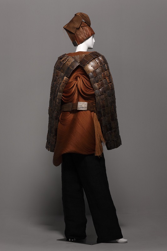 自1993年首屆“兄弟杯”中國國際青年服裝設計師作品大賽開始,改革開放后的中國第一代服裝設計師逐步登上時裝設計舞臺。這一代設計師大多具有藝術院校的教育背景和跌宕起伏的人生經歷,有著強烈的愛國精神和使命感。作品靈感多取自中國傳統(tǒng)文化元素,采用藝術化的設計語言,表現深厚的家國情懷。今天我們?yōu)榇蠹医榻B國絲館“更衣記”展覽中的一組作品《秦俑》。