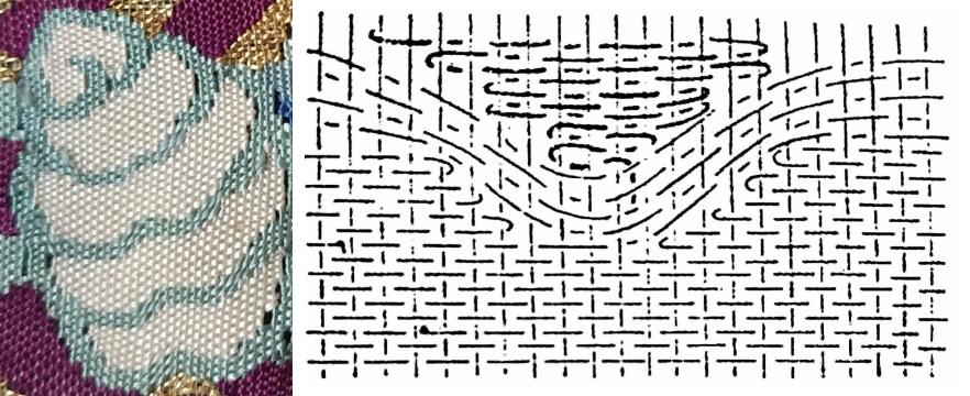 圖5 紫地緙絲龍袍繞緙圖案及織法示意圖