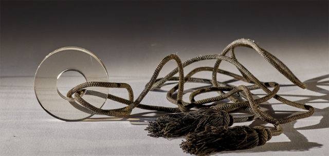 趙伯澐的頭部還有一枚水晶壁,這件水晶壁與投龍玉璧大小一致,通體無暇,很是剔透,素面、透明、無色,一如虛空的鏡像,真是令人喜愛。很難想象在沒有高精度機器設備的古代,竟能研磨出如此平整,光亮,剔透,弧線規(guī)整流暢的水晶物件。
