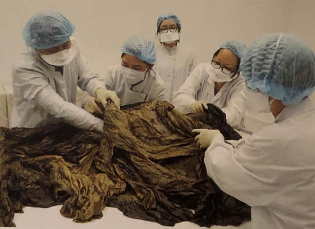 (右)揭展時在服飾中的確發(fā)現大量水銀
