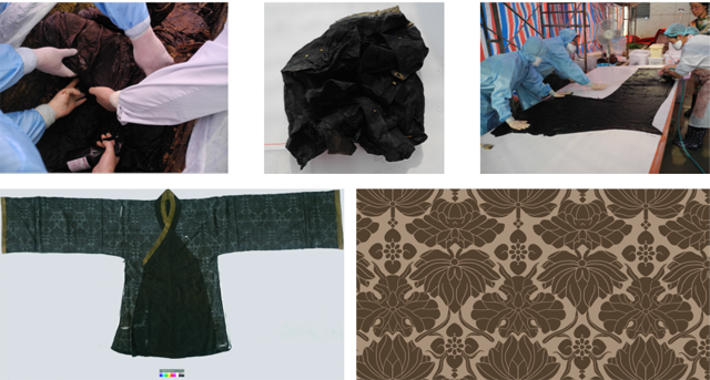 蓮花紋亮地紗袍的應急保護過程