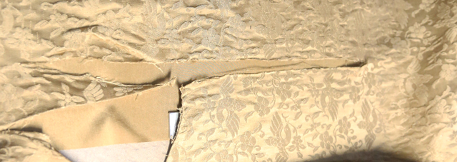 圖2 鳥銜花枝紋緞夾襖背面(修復(fù)前)