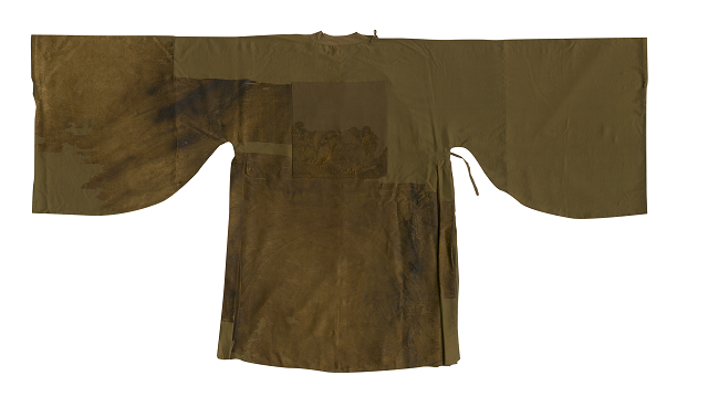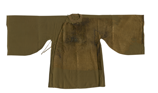 這是一件明代的大袖袍,出土于浙江嘉興王店李家墳。該墓是墓主李湘和他一妻二妾的四室合葬墓。
