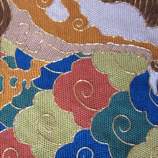 清代盤金繡獅子方補,中國絲綢博物館藏