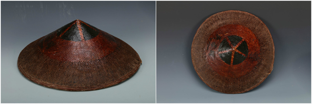 錐形黑紅漆竹編帽