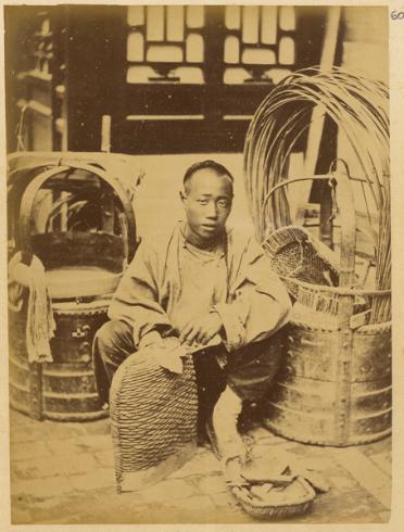 19世紀(jì)末,中國(guó)工匠在用編織技術(shù)制作簸箕