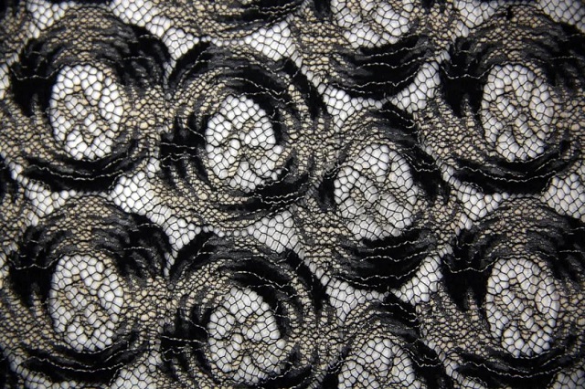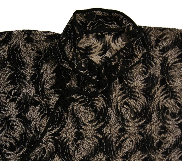 黑地渦紋蕾絲旗袍紋樣細(xì)節(jié)圖(中國絲綢博物館藏)