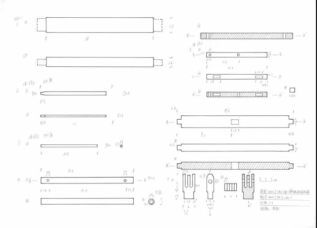 圖6 成都老官山漢墓出土提花織機(jī)模型測(cè)繪圖紙
