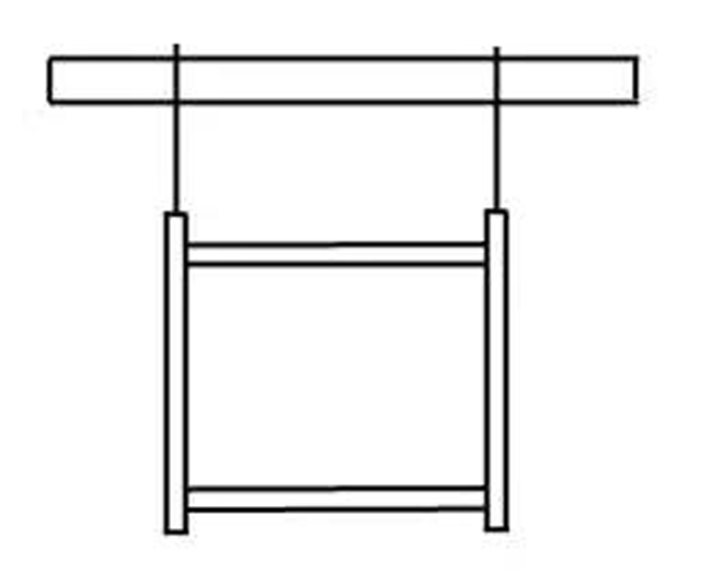 3、踏下地綜踏板a,地綜1下降通過(guò)滑輪提起地綜2,完成一個(gè)經(jīng)錦的一個(gè)平紋開(kāi)口。