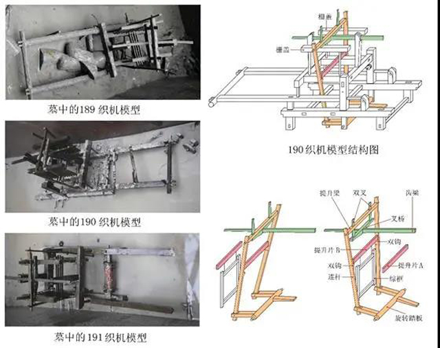圖24 老官山2號(hào)墓多綜提花織機(jī)與相關(guān)文物模型復(fù)制品