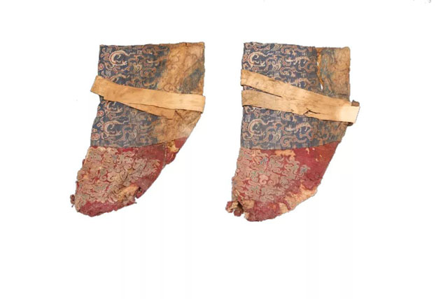 尼雅遺址出土的織錦繡花氈靴