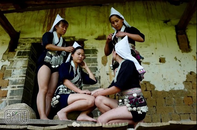 現(xiàn)實(shí)生活中的哀牢山哈尼族有句俗話:梯田是小伙子的臉,小伙子美不美,先不看相貌怎么樣,要看他農(nóng)活做得好不好,要是他打埂、鏟堤、犁田樣樣來得,就會(huì)得到大家的稱贊,自然會(huì)贏得姑娘的愛慕;姑娘美不美,也不只看模樣,要看她會(huì)不會(huì)在梯田里做活計(jì),而活干得好的姑娘,大腿一定長(zhǎng)得健美。居住在滇南紅河大羊街、浪堤一帶的奕車女子服飾,就充分顯示了大腿的健與美。