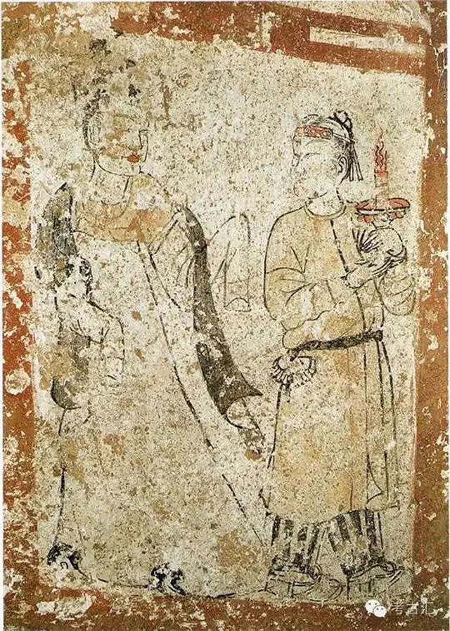 唐代秉燭與黑披帛二女仕圖(新城公主墓壁畫)