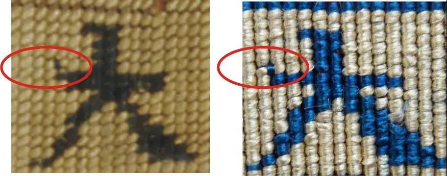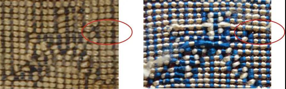 圖10 筆鋒編織效果正面、背面對(duì)比(左為原物,右為復(fù)制品)