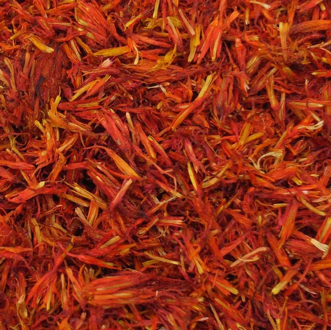 紅花(學(xué)名Carthamus tinctorius L.)又名紅藍(lán)花,花中含有的紅花紅色素可染“真紅”,是清代主要的紅色染材。紅花歷史悠久,起源于地中海地區(qū),后經(jīng)中亞由絲綢之路傳入中國(guó)。北魏賈思勰的《齊民要術(shù)》最早記載了紅花作為染料的應(yīng)用。紅花染料中也存在黃色素,但色牢度較低,染色前需要“去黃”,即《齊民要術(shù)》記載的“殺花法”,這表示在南北朝時(shí)期就形成了較為成熟的紅花染色工藝,明代宋應(yīng)星的《天工開(kāi)物》中也詳細(xì)記載了制作干燥易儲(chǔ)存的“紅花餅”的方法。