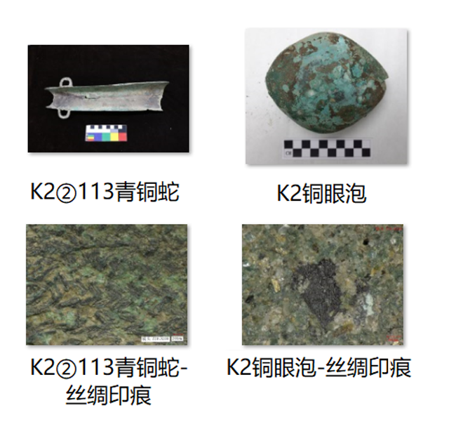 圖3 發(fā)現(xiàn)絲綢印痕的部分文物