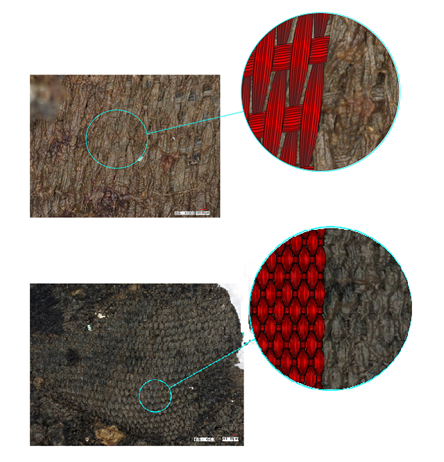 圖4 絹組織結(jié)構(gòu)示意圖,K3(上)、K8