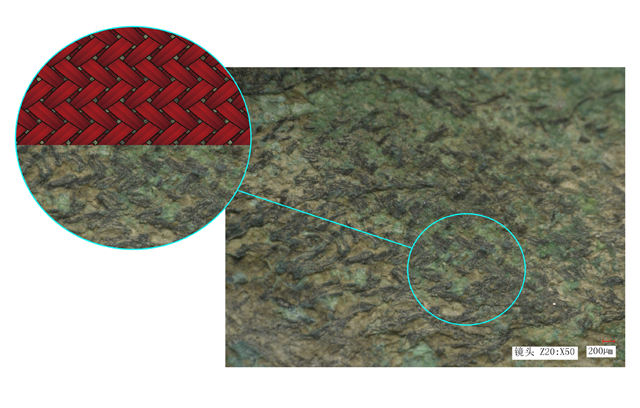 商代的紡織品大多是附著在青銅器上得以保存,這是因為青銅器中在埋藏過程中,不斷釋放銅離子,可以在周邊土壤中營造抑菌微環(huán)境,有利于絲綢等有機(jī)材質(zhì)文物的保存,逐漸成為青銅器表面的礦化印痕。