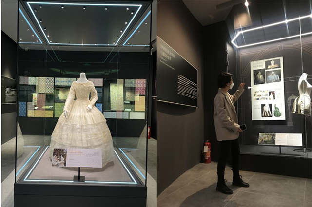 首先,呂昉老師以時(shí)間為軸,展品為媒介帶領(lǐng)大家參觀了“時(shí)尚的輪廓”展覽,介紹了西方的服裝整體的發(fā)展歷史,著重地講解了西方18世紀(jì)到20世紀(jì)的服裝,借服裝款式的演變闡述了社會發(fā)展與藝術(shù)風(fēng)格的轉(zhuǎn)變。