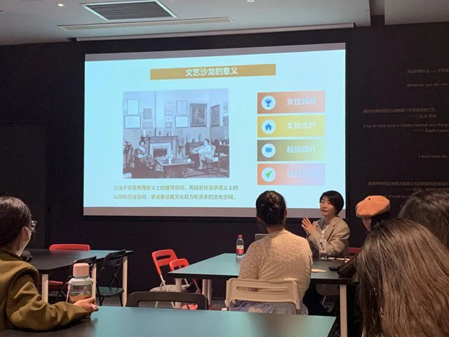展覽過后,呂昉老師以沙龍的興起及其發(fā)展歷程為線,借由一些著名“沙龍?zhí)钡娘L(fēng)趣軼事介紹了17、18世紀(jì)的法國沙龍,19、20世紀(jì)美國沙龍以及沙龍?jiān)谥袊陌l(fā)展,探討了女性角色與沙龍意義。