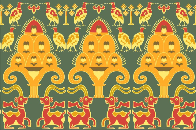 對鳥對羊燈樹紋錦紋樣復原
