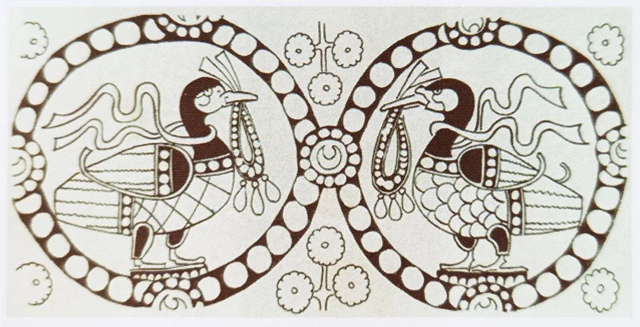 克孜爾石窟壁畫中的團窠鳥銜綬帶圖案,6-8世紀