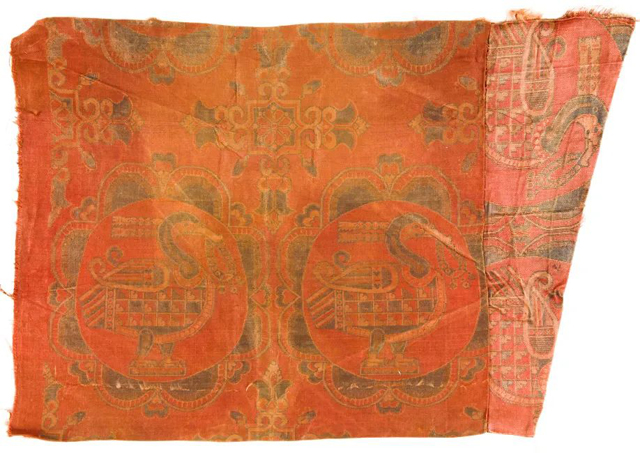 紅地花鳥紋錦,中唐(778)