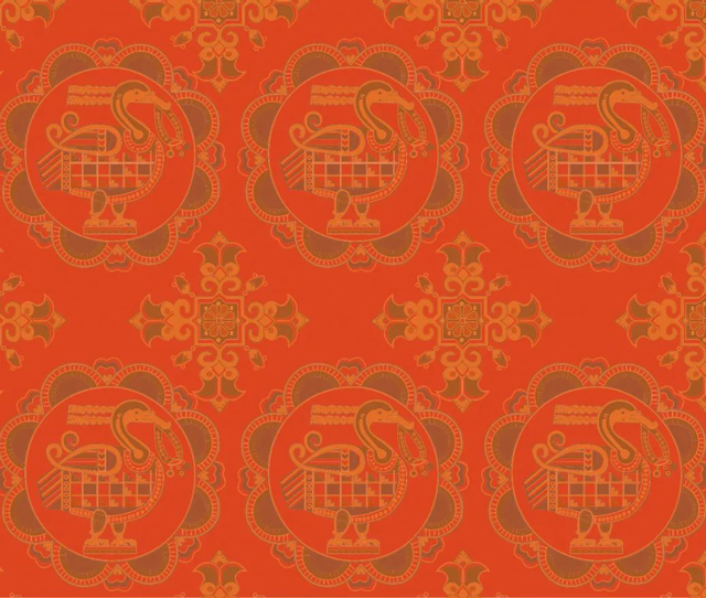 紅地花鳥紋錦紋樣復原