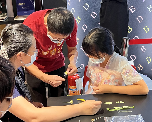 課上,老師一邊示范,一邊講解動作要點(diǎn):花瓣包得太緊會導(dǎo)致無法順利翻轉(zhuǎn),包得太松則會在翻轉(zhuǎn)時(shí)脫落。在領(lǐng)會動作要點(diǎn)之后,大家依次拿起制作工具和材料開始制作。