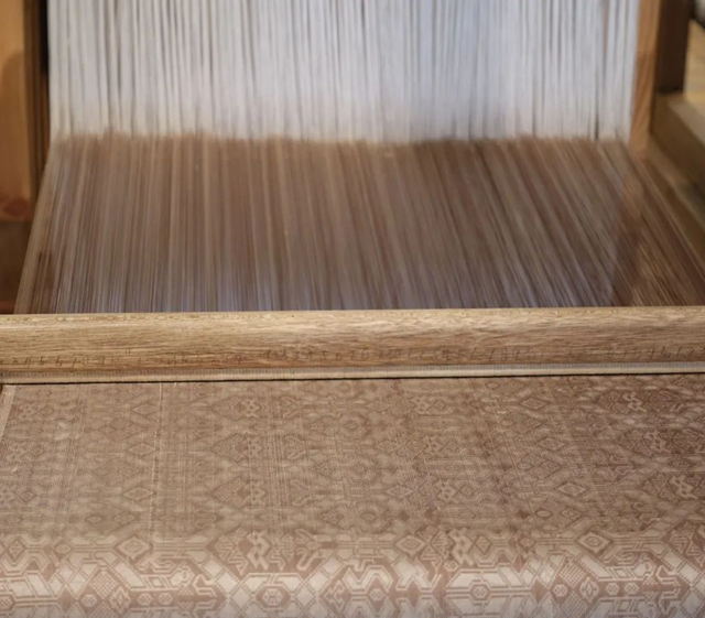 云錦:云錦是一個較為混雜的概念,歷史上是對精美云紋織物的贊美,民國之后開始指代南京出產(chǎn)的錦,其主要品種屬于妝花,即挖梭工藝。在織造時,先織好完整的一面,然后在想要出現(xiàn)圖案的區(qū)域進(jìn)行通經(jīng)斷緯的織法填入彩色緯線。簡單類比的話,就類似刺繡,是附加緯線,如果把圖案上的緯線拆掉,地下的織物仍然存在。根據(jù)不同的地組織,妝花織物可分為妝花紗、妝花羅、妝花緞等;根據(jù)不同的緯線種類,還可分為妝花、妝金、妝銀等。