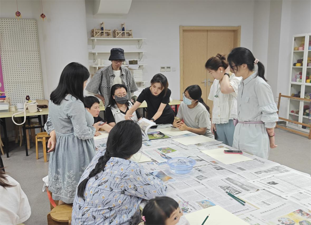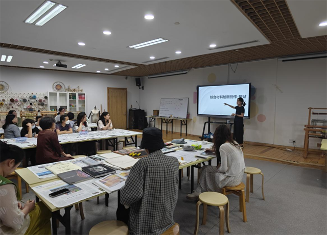 2023年6月4日下午,時(shí)尚教室特邀浙江理工大學(xué)副教授陸珂琦,在女紅傳習(xí)館舉辦了“綜合材料繪畫創(chuàng)作-拼貼”活動(dòng)。