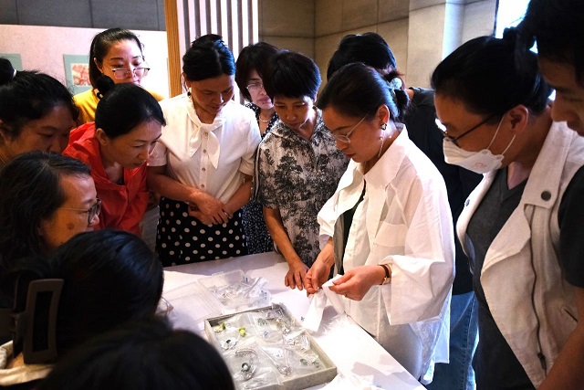 課上,大家通過實(shí)物鑒賞和佩戴體驗(yàn),針對(duì)設(shè)計(jì)、材質(zhì)、加工、等提出問題。大家圍繞都市時(shí)尚美育,以創(chuàng)意首飾為話題,從女性自我認(rèn)同、“美”的表達(dá)、“美”的選擇方面,進(jìn)行了深入的交流互動(dòng),共同度過一個(gè)愉悅的周末下午。