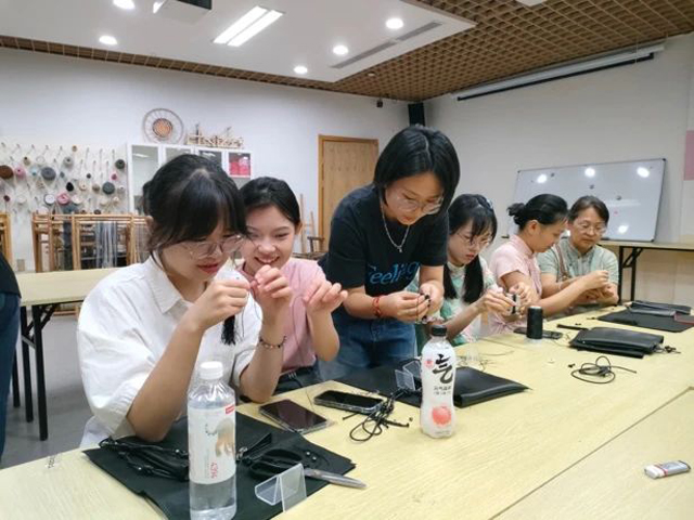 大家通過中式手工元素:曼陀羅提手編織、自制串珠流蘇,對基礎包身進行DIY設計,每一個人都制作了屬于自己獨一無二的包袋,大家不僅了解了傳統(tǒng)文化的魅力,也感受到現(xiàn)代與古代文化交融的美。