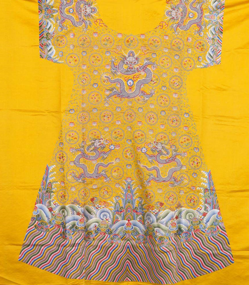 清乾隆明黃色緞地緝米珠繡龍袍料
