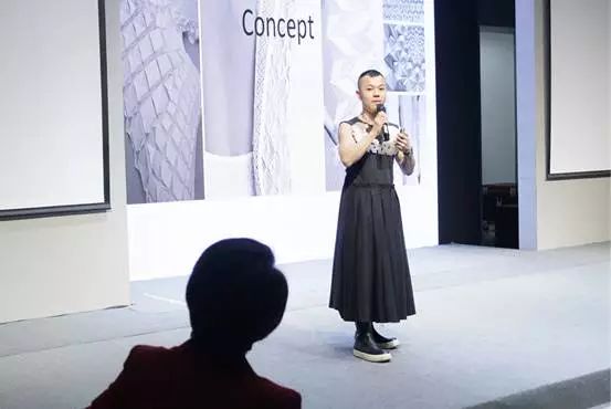 著名設計師勞倫斯?許上臺致辭,闡述了他的設計如何運用了新興的3D技術(shù)。