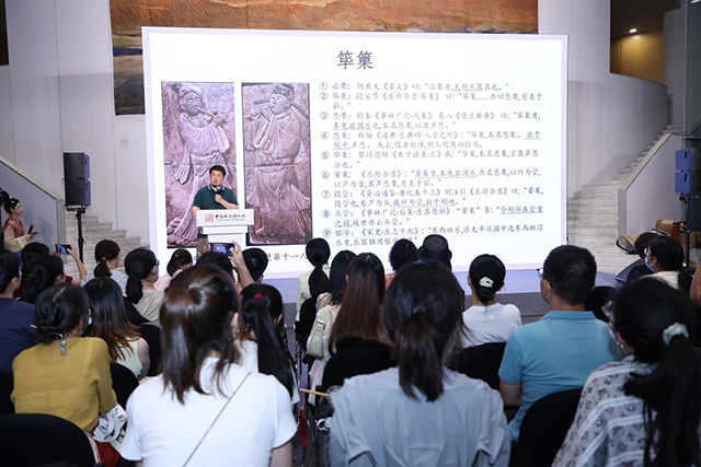 浙江音樂學院作曲與指揮系辦公室主任李鯉博士以《絲路音樂文化的融合與沉淀——五代時期馮暉墓中的樂舞圖像為例》為題,與在座觀眾交流分享了在絲綢之路的延伸和隋唐朝代發(fā)展的背景下,周漢金石雅樂逐漸衰微,胡、俗樂為主的燕樂得以蓬勃發(fā)展,絲路音樂文化在歷經(jīng)沉淀后得以發(fā)生本土化的融合發(fā)展。