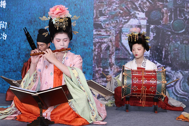 阿勒克什樂隊為現(xiàn)場觀眾帶來以古樂器演奏、舞蹈和古樂器復原研究為內(nèi)容的《敦煌古譜新演繹》分享表演。