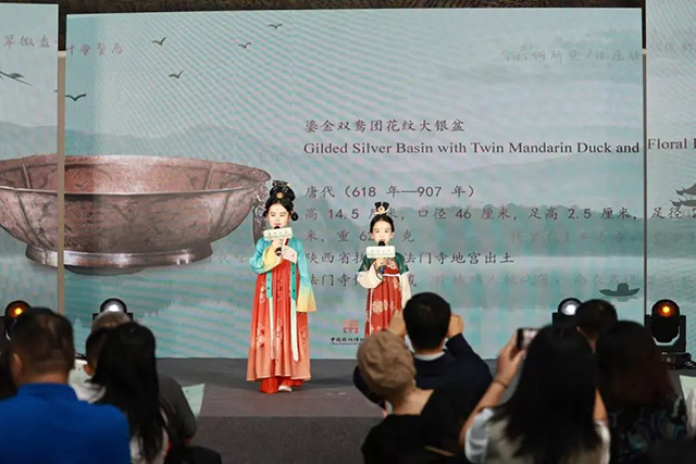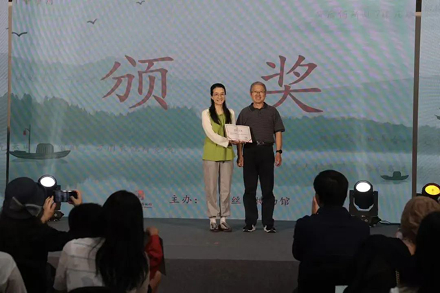 活動(dòng)現(xiàn)場(chǎng),不僅有精彩的《將進(jìn)酒》《春江花月夜》《回鄉(xiāng)偶書(shū)》等唐詩(shī)朗誦,還有琵琶五重奏《春江花月夜》、獨(dú)唱《憶江南》等。此外,在本次活動(dòng)上,博物館還為參與“九天閶闔——絲綢之路上的長(zhǎng)安”線上研學(xué)活動(dòng)和“我眼中的長(zhǎng)安展”的獲獎(jiǎng)代表頒發(fā)了研學(xué)獎(jiǎng)學(xué)金和證書(shū),同時(shí),優(yōu)秀志愿者和首批國(guó)絲小講解員也來(lái)到了現(xiàn)場(chǎng),小講解員們還為觀眾講解了數(shù)件文物,讓觀眾在欣賞詩(shī)歌朗誦會(huì)的同時(shí)也能學(xué)習(xí)到更多的文博知識(shí)。