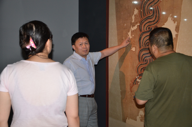 8月6日,汪自強(qiáng)到達(dá)吐魯番研究院了解新疆吐魯番阿斯塔那出土紡織品的修復(fù)保護(hù)進(jìn)展,察看了修復(fù)中的文物,提出了具體的修復(fù)保護(hù)意見。同時(shí),就阿斯塔那出土伏羲女媧絹畫的修復(fù),與吐魯番研究院技術(shù)人員進(jìn)行深入具體的討論,并對絹畫進(jìn)行前期的除塵、拍照等工作。